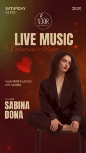 Live music “ValentinesNight” nga Sabina Dona te Noor Coffee & Fine Food