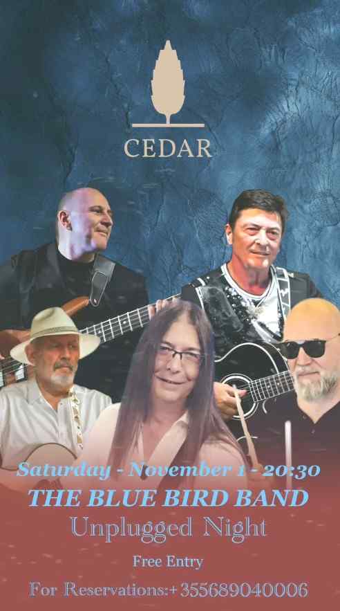 đžJoin us as Bledar Sejko, Ilir Duri, Sokol Shehu, Einar Nelku, and Roland Fusha of The Blue Bird Band light up the stage at Cedar!đ