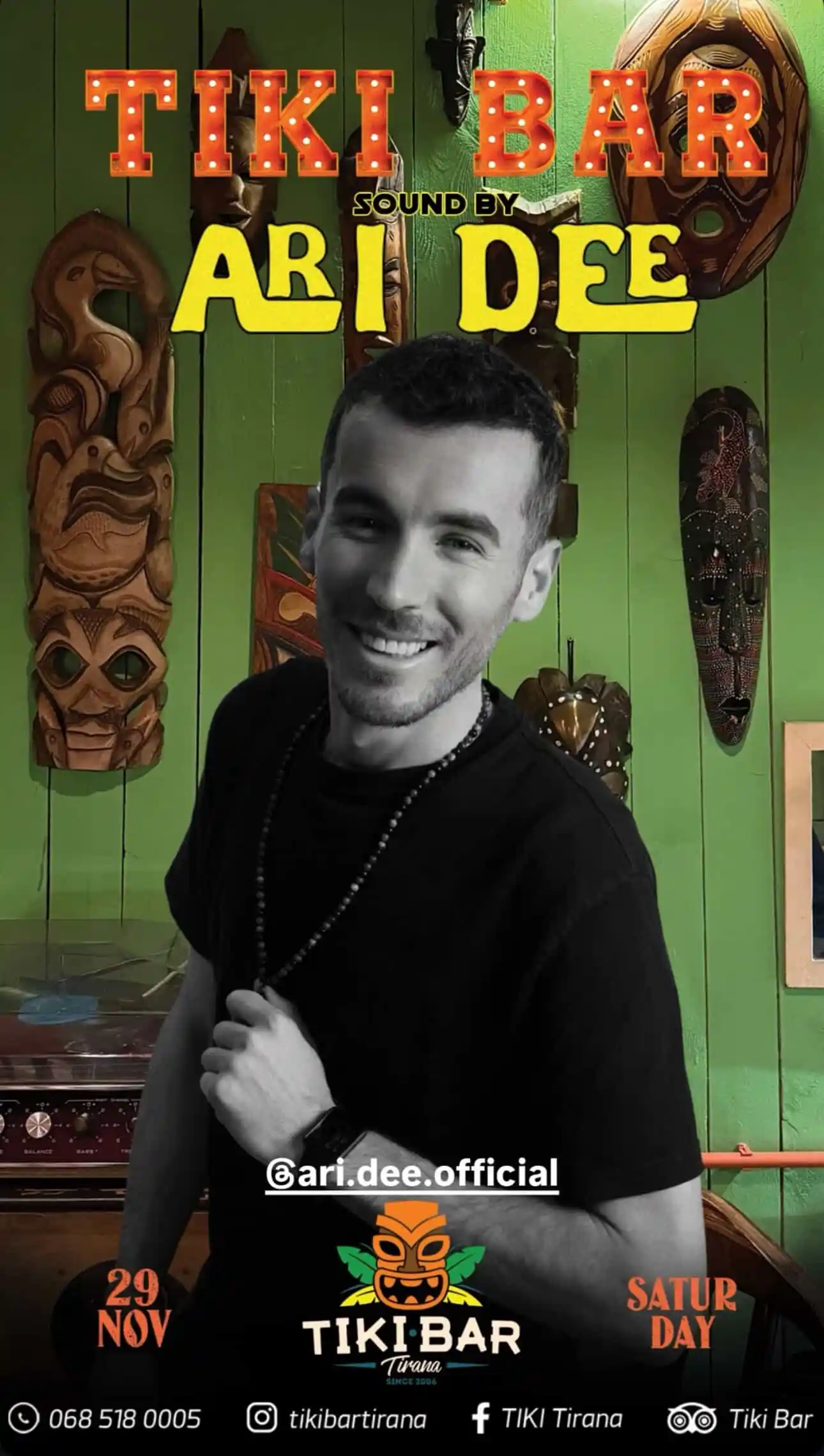 Live set nga DJ ARI DEE te TIKI BAR + Add to Google Calendar + iCal / Outlook export Date 29/11/2025 Time 21:00 Çmimi Hyrje e lirë Location Tiki Bar Tirana Kategorite Muzikë Night Life Performancë Share this event