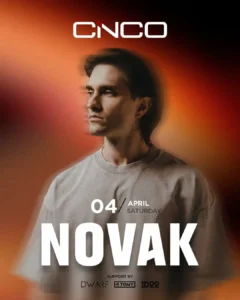 he sound. The lights. The moment. NOVAK live this Saturday at CINCO. 🚀 •With Reservation Free Entry• For Reservations 📞+355 68 555 0861 Vip Table 📞+355 68 600 4046 https://cinco.al