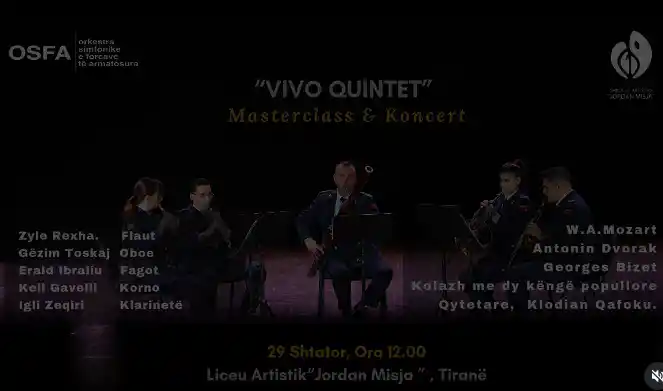 Kuinteti i frymës “Vivo”, i përbërë nga anëtarë të Orkestrës Simfonike të Forcave të Armatosura Shqiptare, do të japë një koncert masterclass të jashtëzakonshëm, si pjesë e një bashkëpunimi didaktiko-artistik me Liceun “jordan Misja”