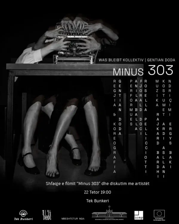 Pas turneut në Elbasan dhe Shkodër, “Minus 303” rikthehet në Tek Bunkeri dhe was bleibt kollektiv | Gentian Doda – këtë herë në formën e një shfaqjeje filmi që sjell përjetimin e plotë të veprës skenike që flet përmes trupit, atje ku fjala është ndalur nga dhuna e historisë.