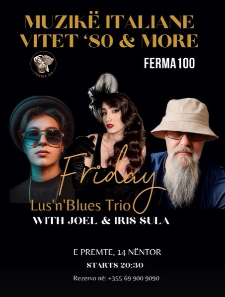 Më 14 nëntor, Ferma100 ju fton në një mbrëmje magjike me Lus’n’Blues – Trio With Joel & Iris Sula.