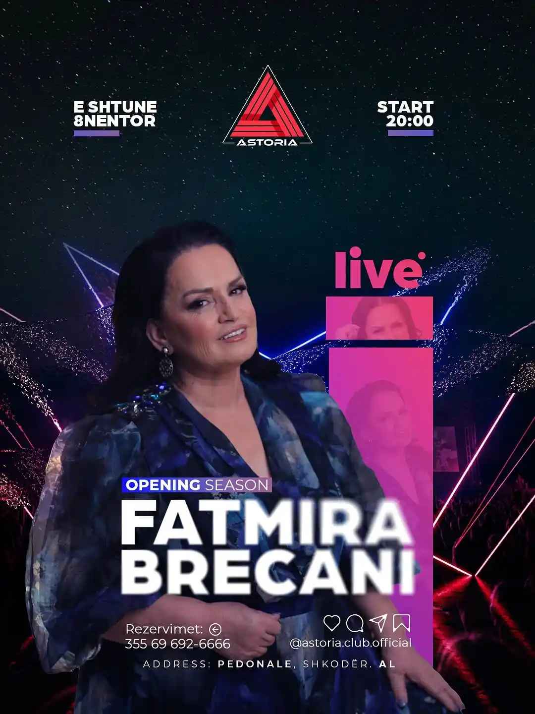 Muzikë live nga Fatmira Breçani te “Astoria Club” Shkodër TE SHTUNEN MUNGESAT NUK JUSTIFIKOHEN😍 DADA NE ASTORIA / 20:00 START🧨 + Add to Google Calendar + iCal / Outlook export Date 08/11/2025 Time 20:00 Location Astoria Club Shkoder Kategorite Muzikë Night Life Share this event