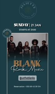 Muzikë live nga Grupi “Blank” te “Juliette Cocktail Bar” Tiranë