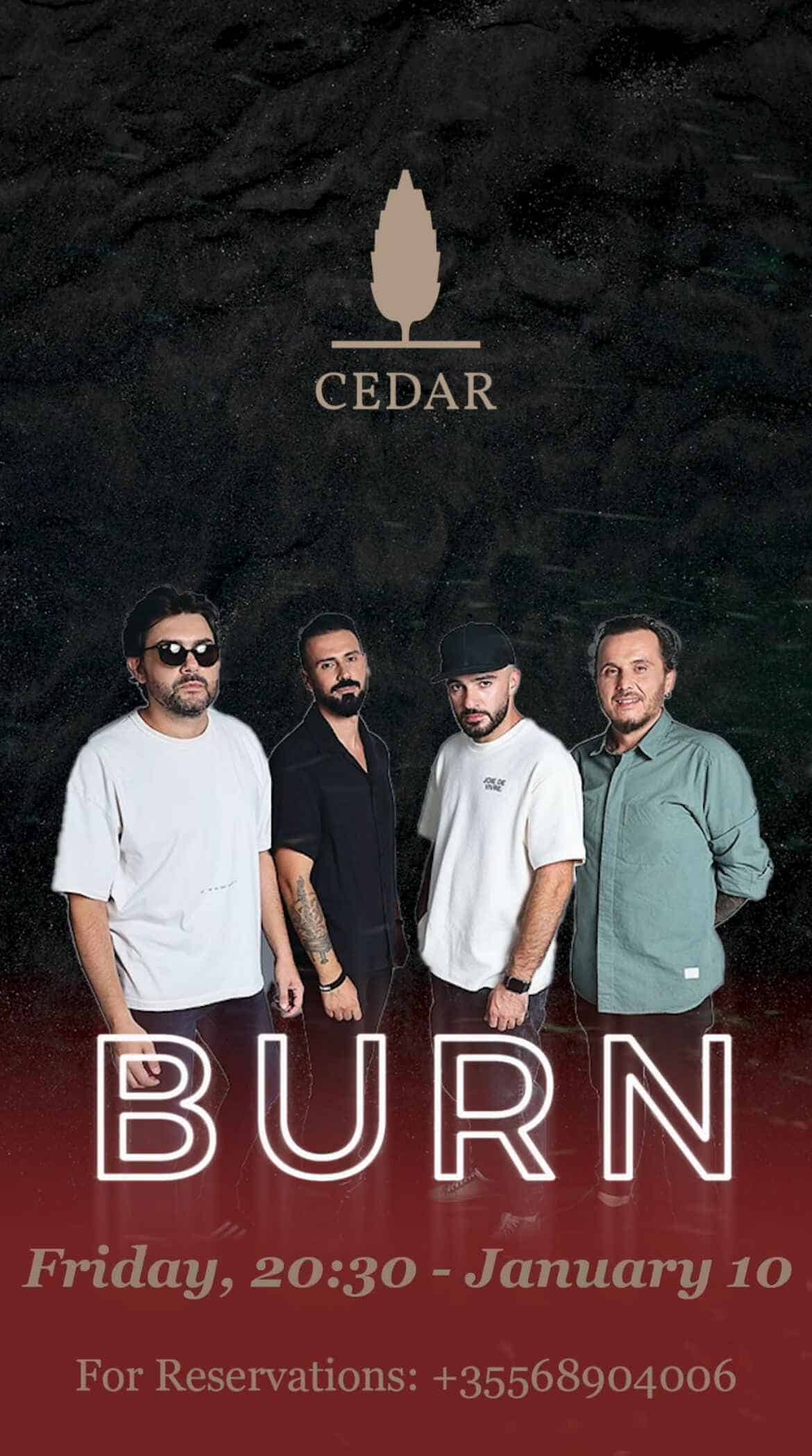 Bashkohuni këtë të premte në Cedar për një shfaqje muzikore live me Burn Band! Energji të mira, muzikë fantastike dhe një natë që nuk dëshironi ta humbisni. Shihemi atje! 🥁