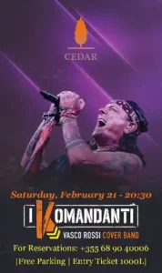 This Friday, I Komandanti are BACK at Cedar — and they’re bringing the ultimate Vasco Rossi tribute experience with them! 🔥🎸