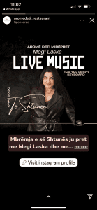 Mbrëmja e së Shtunës ju pret me Megi Laska dhe me në Tastierë Emiljan Mesitin. Ju mirëpresim 🙌🏻