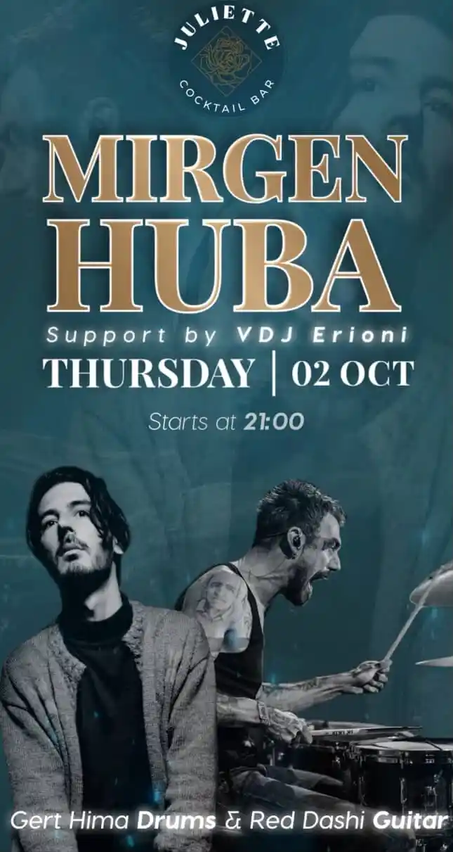 Muzikë live nga Mirgen Huba & VDJ Erioni te “Juliette Cocktail Bar” Tiranë e Enjte @mirgen.huba.vet @hima.junior 🍻 @vdjerioni Dj After Party 🎉 #livemusic #dj + Add to Google Calendar + iCal / Outlook export Date 02/10/2025 Aktivitete të Përfunduara Time 21:00 Location Juliette Cocktail Bar Kategorite Muzikë Night Life Organizer “Juliette Cocktail Bar”, Tiranë Share this event