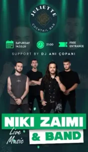 Muzikë live nga Niki Zaimi & Band te “Juliette Cocktail Bar” Tiranë