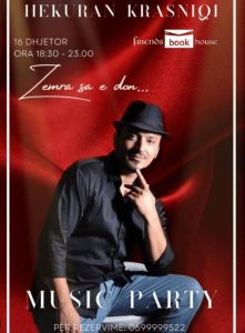 Kengetari i hiteve “ Ajo me mbyti “ & “ Mandarinë” të premten me dt 16 dhjetor eshte i ftuar special Hekuran Krasniqi . Live perfomance, sushi night , finger food. Mos e humbisni 😁