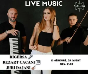 @riigersa @rezart.cacani & @juridajani Nesër, 20 gusht, ora 21:00 Super atmosferë 🎤🎹🎻✨️🥂