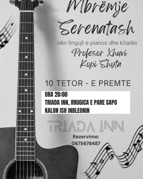 Të premten në mbrëmje, ora 20:00, ju ftojmë të shijoni një mbrëmje të veçantë me muzikë “Live” nga dyshja instrumentale, te Triada Inn.