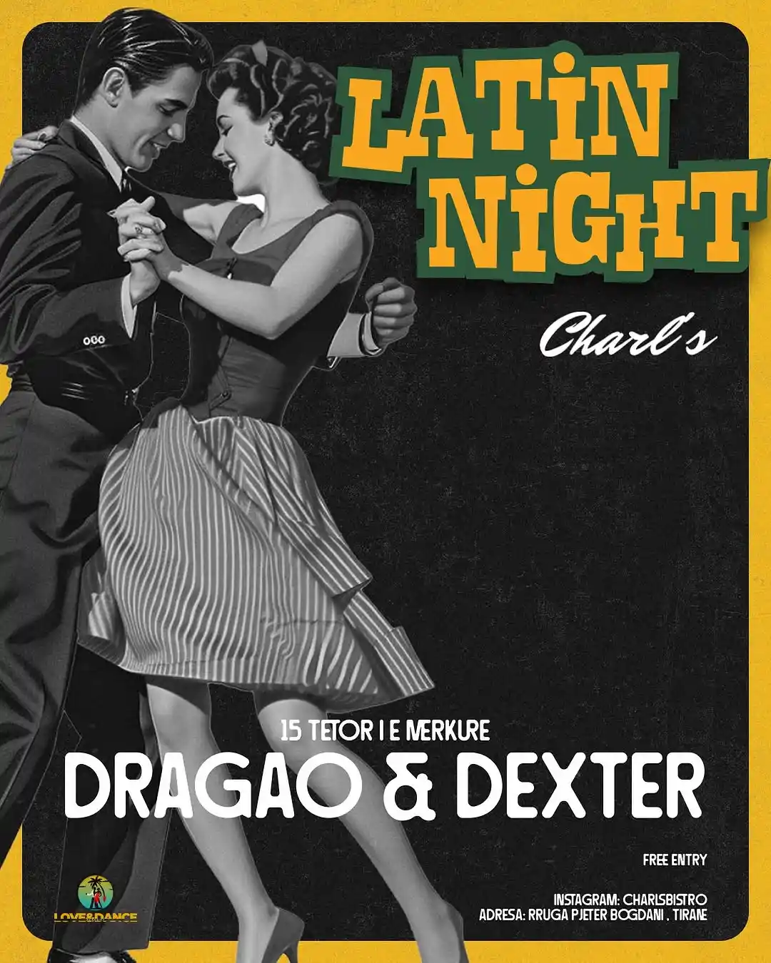Nata latine te “Charls Bistro” Tiranë #wednesdayvibe @loveanddance.al + Add to Google Calendar + iCal / Outlook export Date 15/10/2025 Aktivitete të Përfunduara Time 21:00 Location Charls Bistro Kategorite Night Life Organizer "Charls Bistro" Tiranë Share this event