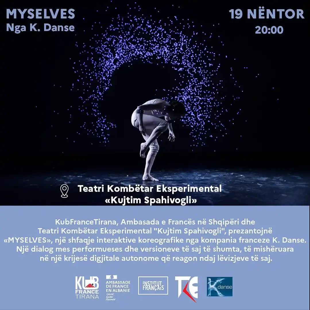 Me 19 Nëntor, ora 20:00 ju ftojmë të ndiqni performancën “Myselves”, nga kompania franceze K. Danse, te Teatri Kombëtar Eksperimental “Kujtim Spahivogli” . 🎭