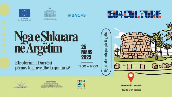 Ky event organizohet në kuadër të projektit “Trashëgimia Epidamn: Lidhja midis së Shkuarës dhe të Tashmes”, i zbatuar nga Durrësi Aktiv në bashkëpunim me MuZEH Lab, nën programin EU4Culture, financuar nga Bashkimi Evropian dhe zbatuar nga UNOPS në partneritet me Ministrinë e Ekonomisë, Kulturës dhe Inovacionit.