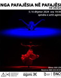Dy netë – 5 & 6 dhjetor – NGA PAFAJËSIA NË PAFAJËSI, një performancë që ndërthur baletin kontemporan dhe teatrin, vjen në ekranin e madh të qendrës së artit Agimi.