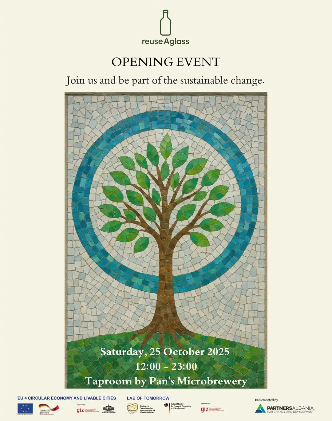 Çfarë ju pret: Prezantimi i nismës “reuseAglass” Ekspozitë dhe degustim në mjedis të qëndrueshëm Punëtori krijuese për ri-përdorimin e qelqit Muzikë, performanca dhe shumë surpriza të tjera!