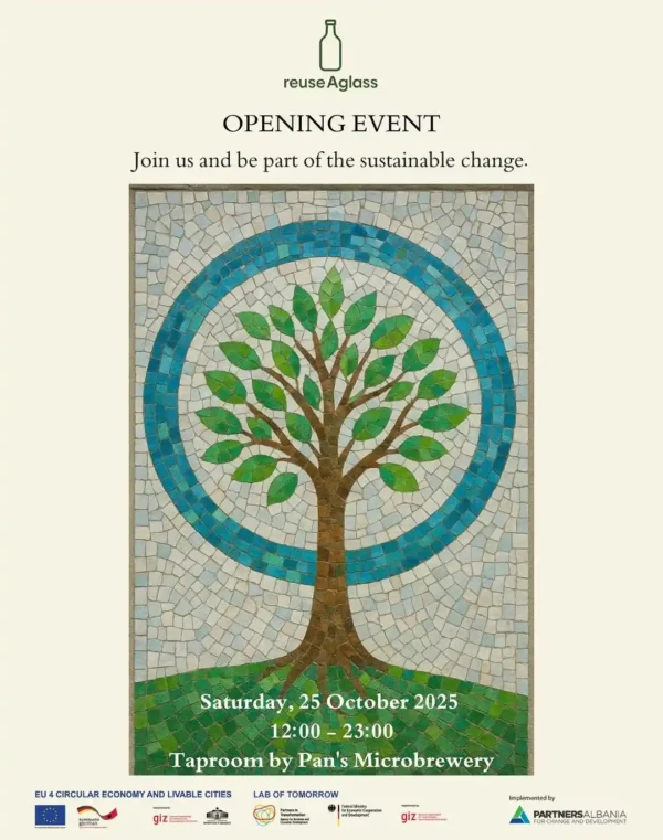 Çfarë ju pret: Prezantimi i nismës “reuseAglass” Ekspozitë dhe degustim në mjedis të qëndrueshëm Punëtori krijuese për ri-përdorimin e qelqit Muzikë, performanca dhe shumë surpriza të tjera!
