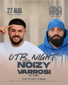 Ara Club sjell natën më të zjarrtë të verës! OTR NIGHT 🔝🔝🔝 Bëhuni gati për një super show dhe një atmosferë shpërthyese, me të ftuar Noizy & Varrosi 🧨🧨💥💥 Një natë epike për të mos u humbur… @noizy @varrosi Reservation: +355 69 2610 638