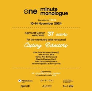 Per here te pare Agjencia e Industrive Kreative te Bashkise Tirane dhe Filmmakers Europe, sjellin ne Tiranë eventin e rendesishem One Minute Monologue —nje mundesi e shkelqyer per aktore profesionale nga vendet e Ballkanit, per te paraqitur artin e tyre drejtperdrejt para Drejtoreve te Casting-ut te Asociasionit Ndërkombëtar i Drejtoreve te Casting-ut (ICDA) dhe Spotlight.
