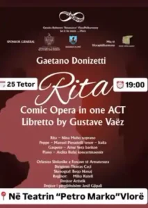 Vazhdon kalendari i shfaqjeve për muajin Tetor në Teatrin “ Petro Marko “ Vlorë me 🎭RITA🎭Sjell në skenë për shikuesin e gjerë Opera Comike me një akt, RITA, me muzikë të kompozitorit italian Gaetano Donizetti mbi një libret francez nga Gustave Vaëz.