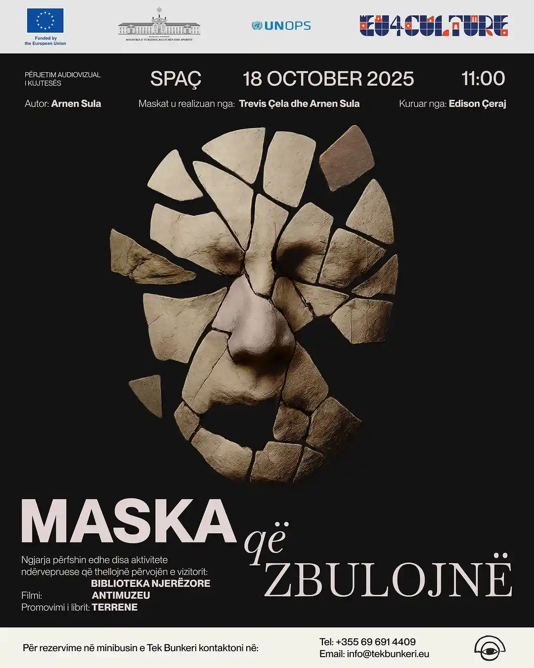 Tek Bunkeri ka kënaqësinë t’ju ftojë në një aktivitet të veçantë që do t’ju përfshijë në histori, art dhe reflektim kolektiv. “Përtej Maskave – Portrete dhe Kujtime: Një Eksplorim Audiovizual” do t’ju ofrojë një përvojë unike përmes ekspozitës, filmave, bisedave dhe takimeve personale.