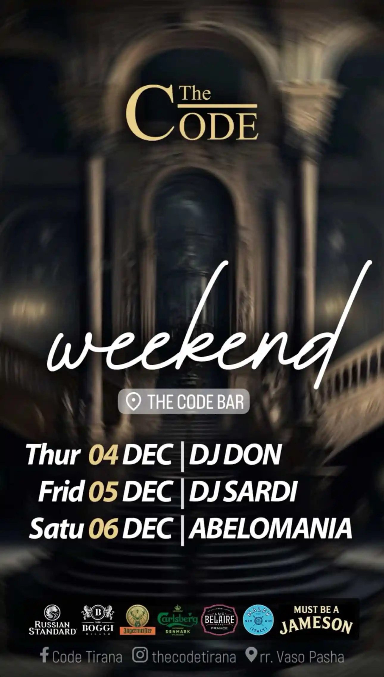 Përzgjedhja muzikore e fundjavës te “The Code” Tiranë + Add to Google Calendar + iCal / Outlook export Date 04/12/2025 Time 22:00 Location "The Code", Tiranë Kategorite Night Life Organizer "The Code", Tiranë Share this event