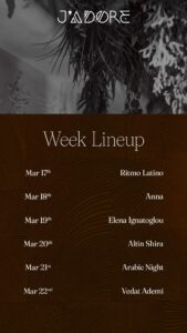 Get ready for a week full of unforgettable nights, live music, and incredible vibes. Every evening brings a different rhythm to the heart of J’ADORE. 🎶