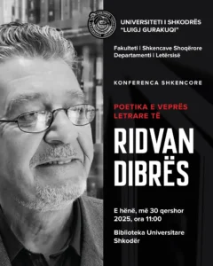 #RidvanDibra #LetërsiShqipe #KonferencëShkencore #UNISHK #DepartamentiLetërsisë #UniversitetiLuigjGurakuqi #Shkodër #PoetikaEVeprës #KrijimtariLetrare #LibraDheIde