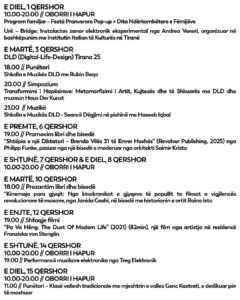 Në bashkëpunim me partnerët dhe artistët tanë rezidentë, ky muaj në Vila 31 x Art Explora sjell prezantime librash dhe biseda publike, sesione muzike, punëtori për të gjitha moshat dhe shfaqje filmash. Oborri do të jetë i hapur çdo fundjavë.