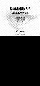 Me datë 7 Qershor 2024, ora 19:00 tek Bulevard, jeni të ftuar në prezantimin e publikimeve më të reja të shtëpisë botuese Pararoja. Në këtë edicion kanë kontribuar artistët: Dea Shubleka, Samela Balazi dhe Zeni Alia.