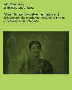 Në këtë punëtori praktike, pjesëmarrësit do të krijojnë filtrat e tyre unikë fotografikë, duke përdorur materiale të thjeshta dhe të riciklueshme. Gjatë procesit, ata do të eksplorojnë se si ngjyra dhe drita ndikojnë në perceptimin e imazhit dhe se si një filtër i vogël mund të ndryshojë plotësisht mënyrën se si shohim botën.