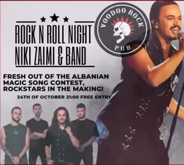 Fresh off Albania’s Magic Song where he and his beyond-glorious band are shaking the charts and turning every head in the country, Niki Zaimi is bringing that same explosive energy back to his home of rock — Voodoo Rock Pub! ⚡