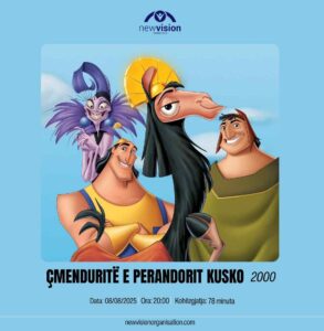🎬 Këtë të premte New Vision ju fton për të parë “Çmenduritë e Perandorit Kusko” — yeap, atë me “Pull the lever, Kronk!… Aaaa! Wrong lever!!” 😆