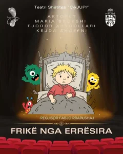 Shfaqja “Frika nga Errësira” tregon historinë e një fëmije të vogël që ka shumë frikë kur bie nata dhe dritat fiken. Për të, errësira duket e mbushur me hije të çuditshme, zëra të panjohur dhe imagjinatë të frikshme. Mamaja dhe babai përpiqen ta ndihmojnë duke e kthyer frikën në lojë: hijet shndërrohen në personazhe qesharake, zërat në këngë dhe errësira në një vend plot surpriza të bukura.