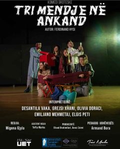 Studentët e vitit të parë të aktrimit, regjisurës dhe grafikës, pjesë e Klubit të Teatrit në UET, sjellin për herë të parë në skenë komedinë groteske “Tri Mendje në Ankand” nga autori Ferdinand Hysi.