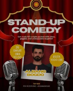 Stand-Up night is back at Tap Bar! With the best @the_albanobogdo 🗓️ E enjte, 26 Shkurt ⏱️ 20:00