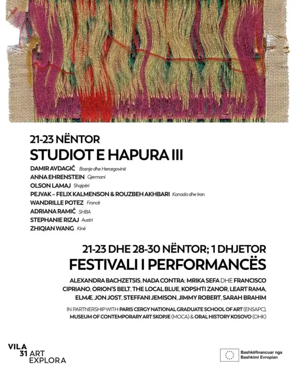 Ruani datat për sesionin e tretë të Studiove të Hapura dhe Festivalin e Performancës në Vilën 31 x Art Explora!