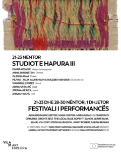 Ejani për të njohur grupin e tretë të artistëve rezidentë dhe për të zbuluar projektet e tyre përmes një programi që përfshin Studiot e Hapura, performanca, shfaqje, punëtori, lexime dhe biseda. Festivali pesë-ditor i Performancës do të zhvillohet së bashku me Studiot e Hapura, duke paraqitur një program me kërcim, muzikë, filma dhe diskutime të cilat nxisin eksperimentimin e praktikave artistike.