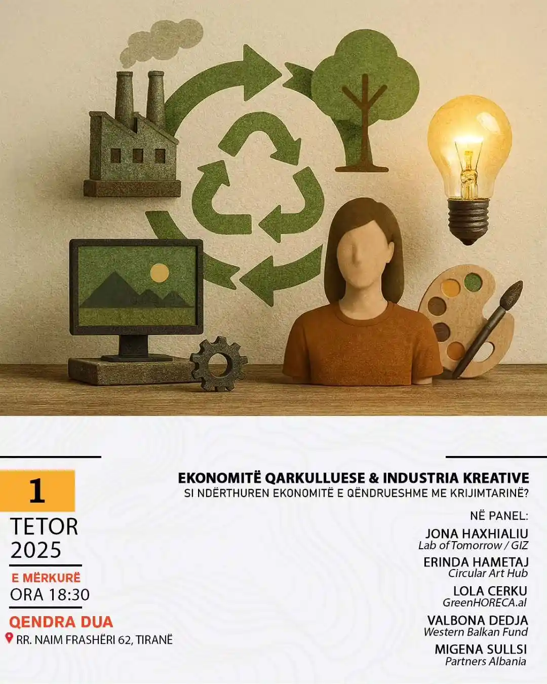 Të mërkurën, datë 1 Tetor, do të diskutojmë sëbashku pranë Qendrës Dua se si arti, dizajni dhe sipërmarrja kreative po transformojnë qasjen ndaj mbetjeve, konsumit dhe inovacionit.