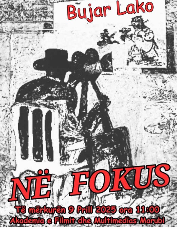 Akademia e Filmit dhe Multimedias Marubi ka kënaqësinë t’ju ftojë në takimin “Fokus: Bujar Lako”, të hapur për publikun me refleksione profesionale për mjeshtërinë aktoriale të tij përgatitur nga Timo Flloko, Mevlan Shanaj dhe Kujtim Çashku, dt 9 Prill ora 11.00 tek Akademia e Filmit në sallën e kinemasë John & Jim Belushi.