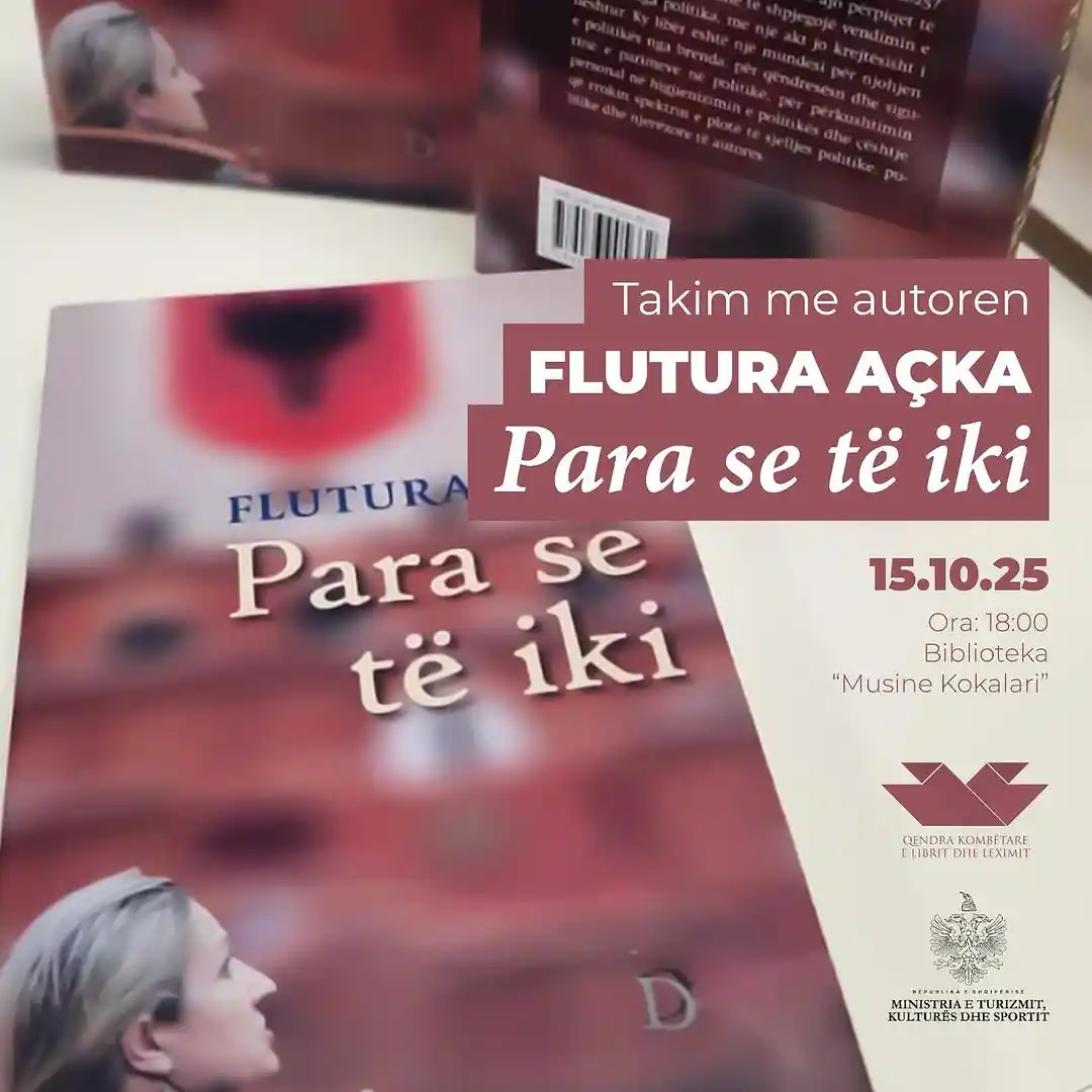Qendra Kombëtare e Librit dhe Leximit në bashkëpunim me Bibliotekën “Musine Kokalari”, në kuadër të muajit të letërsisë organizon një takim mes lexuesve dhe autores Flutura Açka, ku do të diskutohet mbi librin e saj të fundit “Para se të iki”, por edhe mbi krijimtarinë e saj në tërësi.