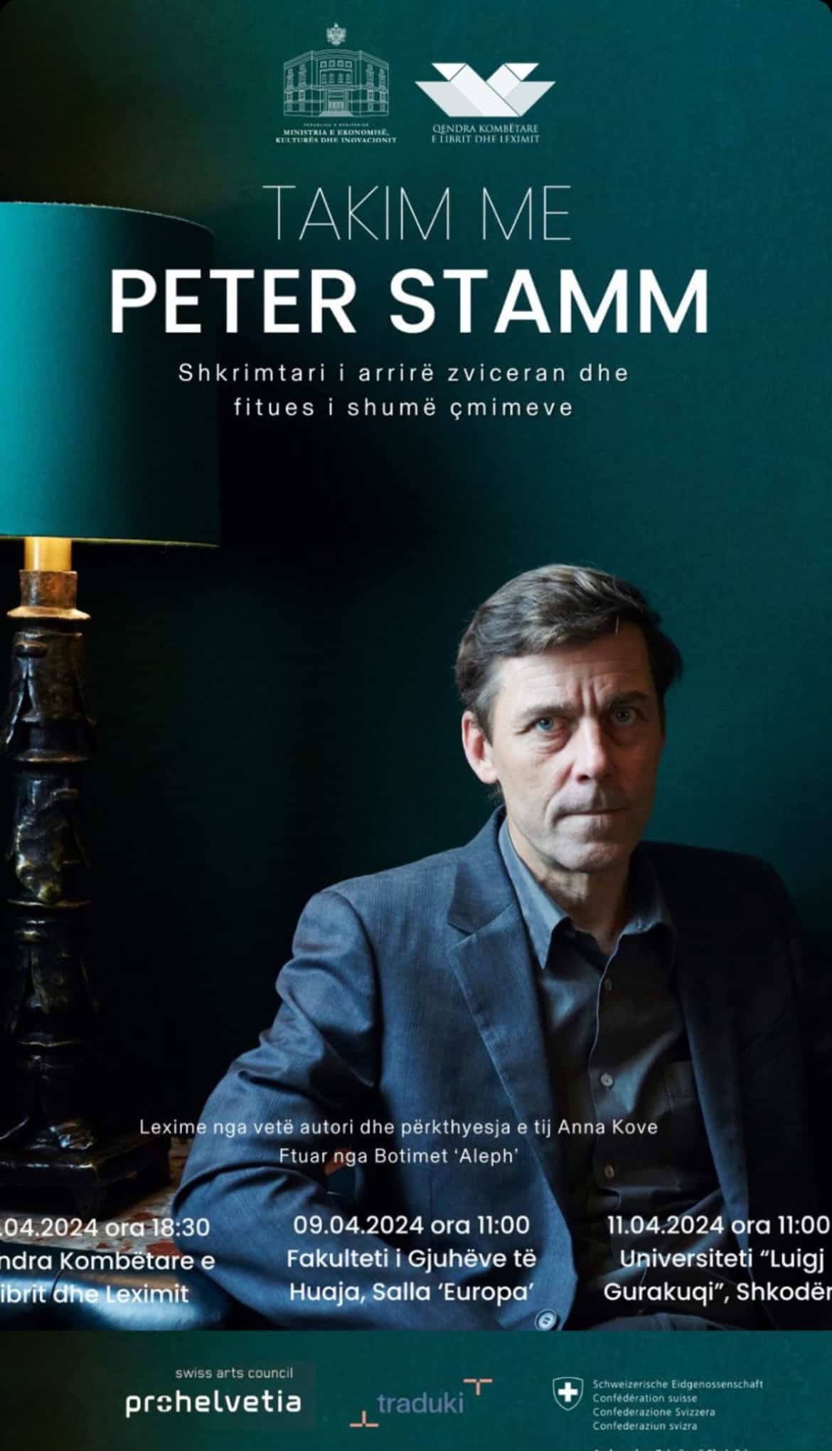 Takim me shkrimtarin Peter Stamm në Tiranë e Shkodër + Add to Google Calendar + iCal / Outlook export Date 11/04/2024 Aktivitete të Përfunduara Time 11:00 Location Universiteti i Shkodrës “Luigj Gurakuqi” Kategorite Libra Takim/Konferenca Share this event