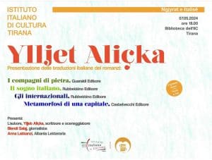 🇦🇱 Instituti Italian i Kulturës në bashkëpunim me Albania Letteraria, ka kënaqësinë të organizojë takimin me shkrimtarin Ylljet Aliçka, i cili do të prezantojë librat në italisht.