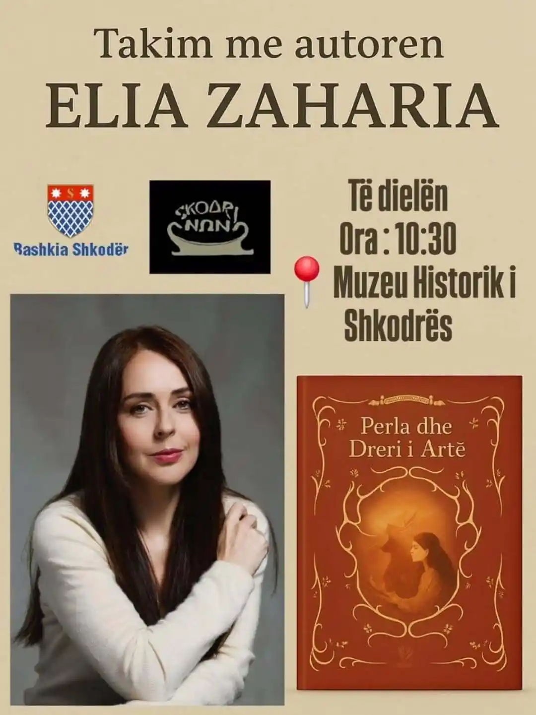 Kemi kënaqësinë t’ju njoftojmë se më 12 tetor 2025, tek Muzeu Historik i Shkodrës, do të kemi të ftuar aktoren dhe autoren e njohur, Elia Zaharia.