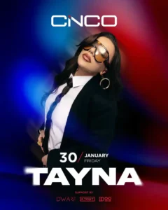 Attitude. Power. @tayna . Friday, January 30 at CINCO. Be ready for a night you won’t forget. •Ticket 1.000 Leke ( 10€ ) With Reservation Free Entry• For Reservations 📞+355 68 555 0861 Vip Table 📞+355 68 600 4046 https://cinco.al
