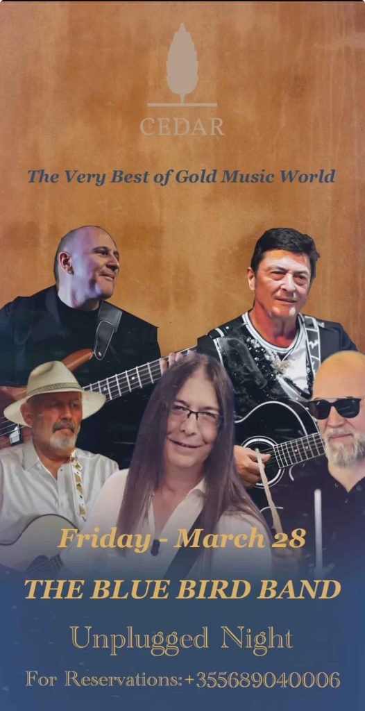 This Friday night, Bledar Sejko, Iir Duri, Sokol Shehu, Einar Nelku, and Roland Fusha of The Blue Bird Band 🎤 are hitting the stage at Cedar! Get ready for an evening of live music, good vibes, and unforgettable energy. Bring your friends, grab a drink 🍺, and enjoy a great night with us! See you there!