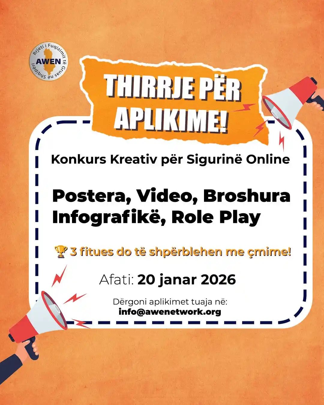 A ke një ide të veçantë për të rritur ndërgjegjësimin mbi sigurinë online? Merr pjesë në Konkursin Kreativ për Sigurinë Online dhe shpreh mesazhin tënd përmes: