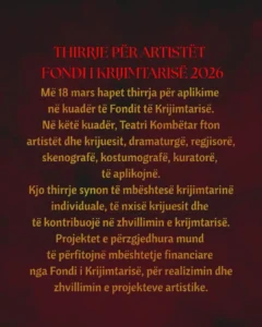 THIRRJE PËR ARTISTËT – FONDI I KRIJIMTARISË 2026